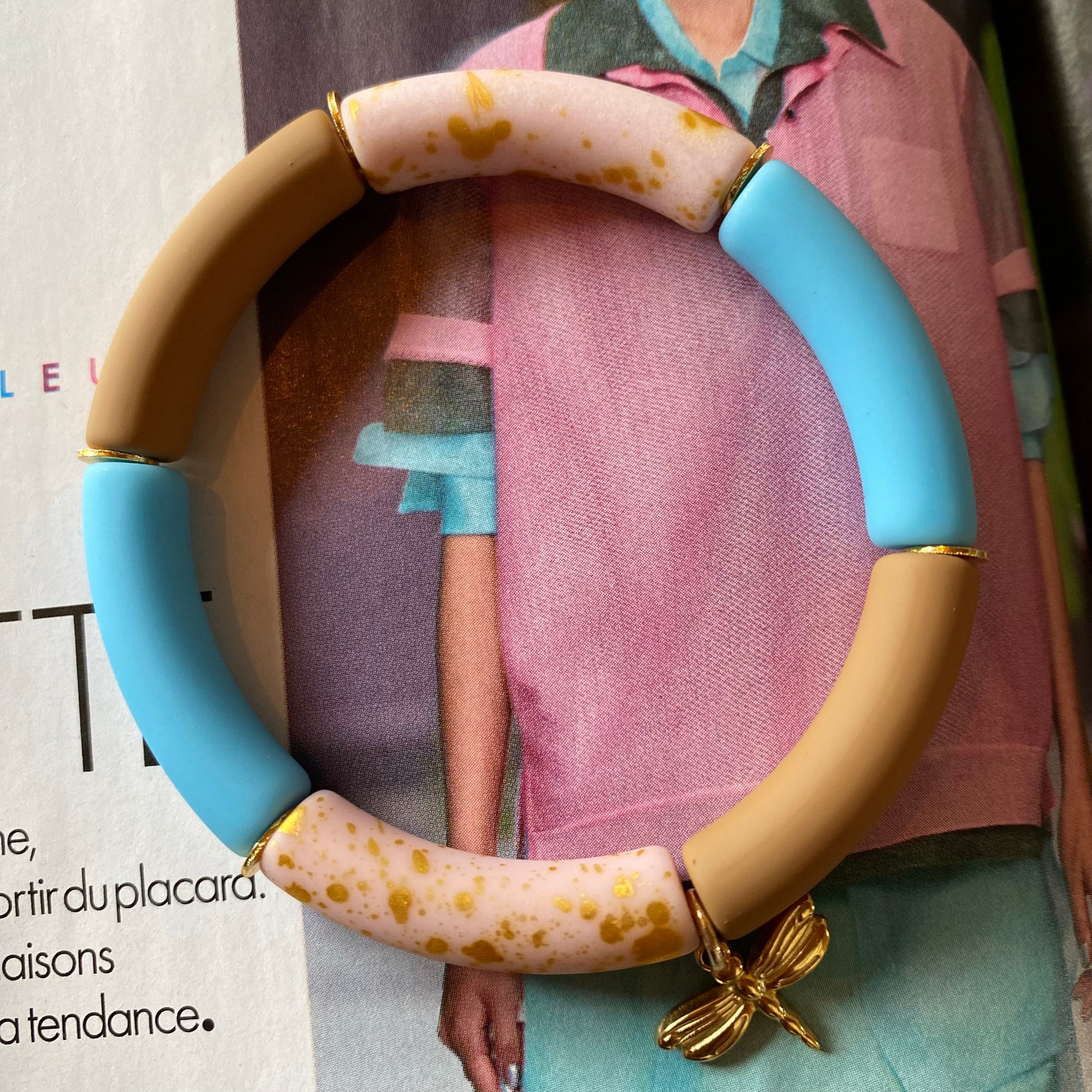 Composition : Perles acryliques, intercalaire et breloque en acier inoxydable.