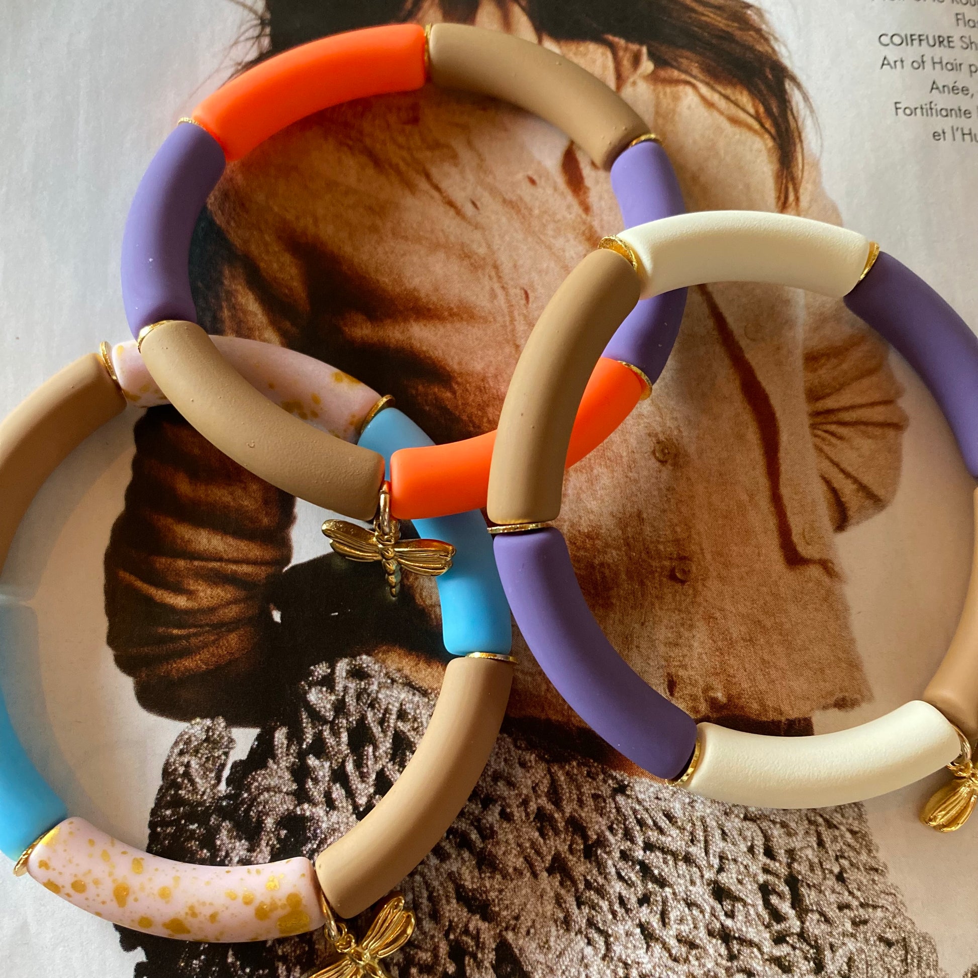 Chaque bracelet est conçu avec des matériaux de qualité, pour un confort optimal et une durabilité exceptionnelle. Les perles colorées, les accents dorés et les pendentifs libellule apportent une note de sophistication à ce trio audacieux.