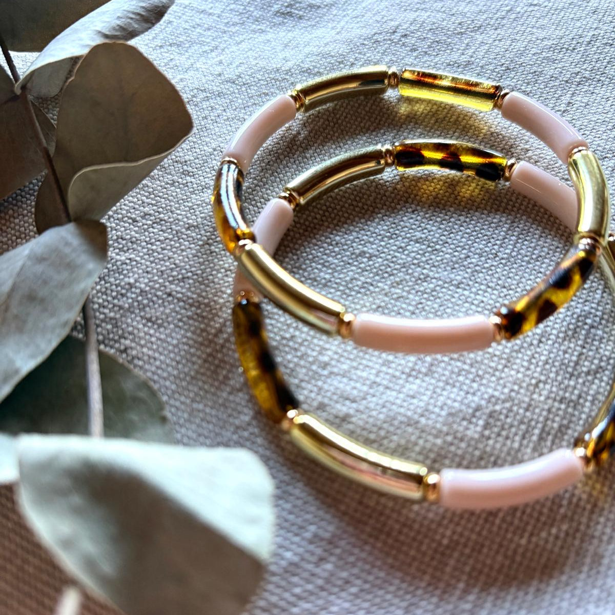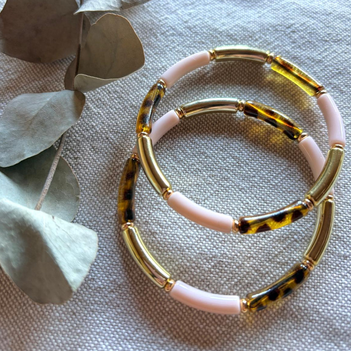 • Design : Alternance de perles de résine blanches et de perles de résine translucides ou colorées.