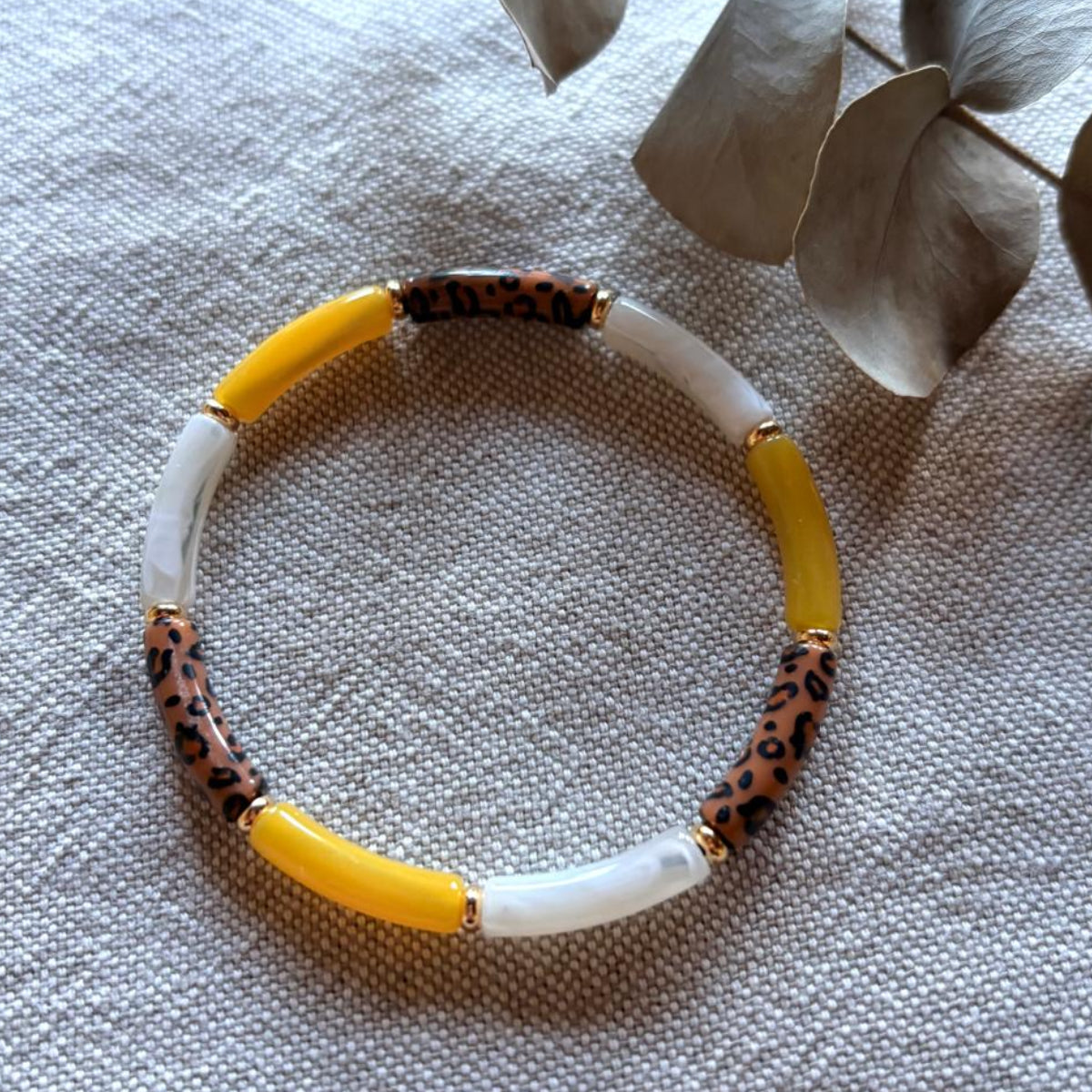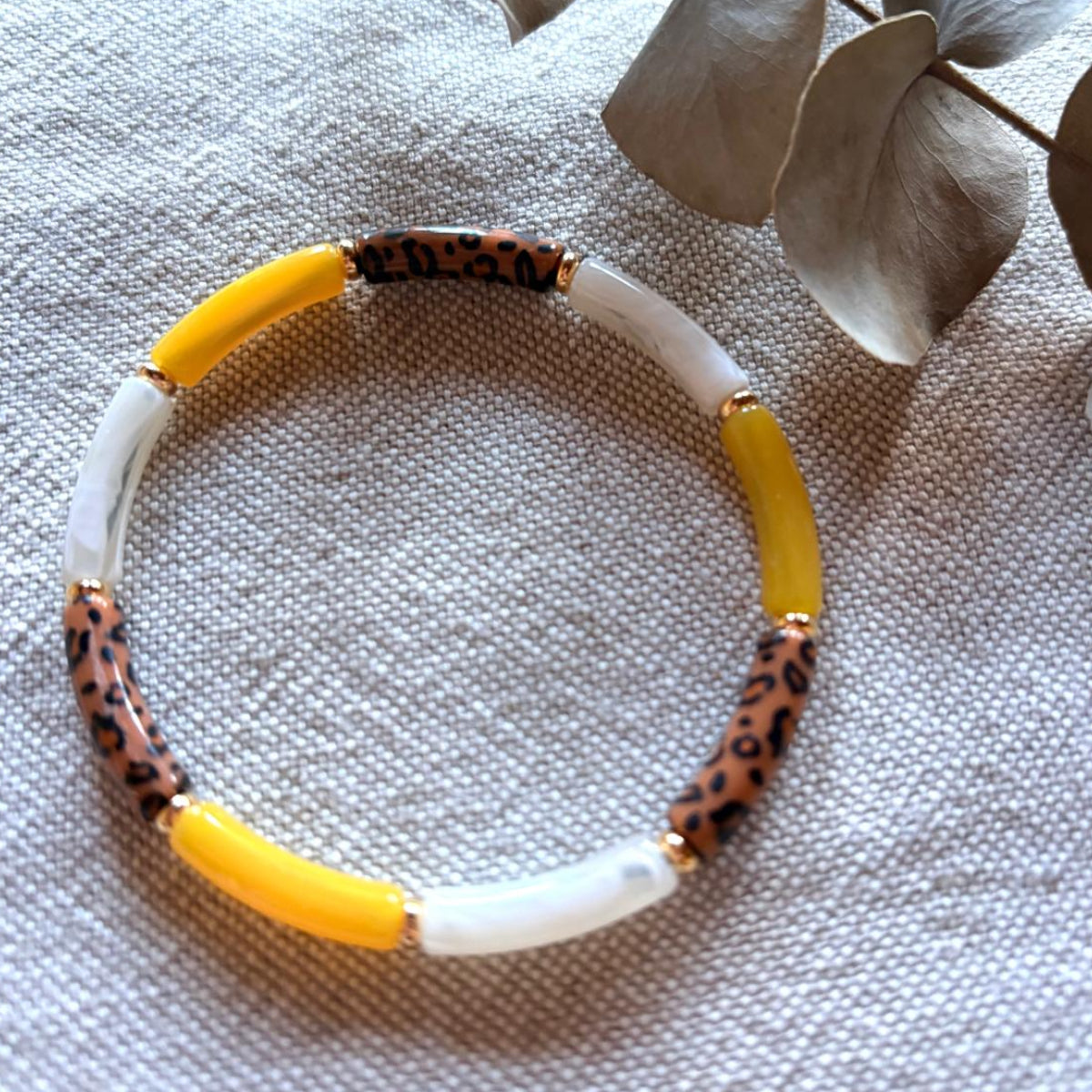 • Design : Alternance de perles de résine blanches et de perles de résine translucides ou colorées.