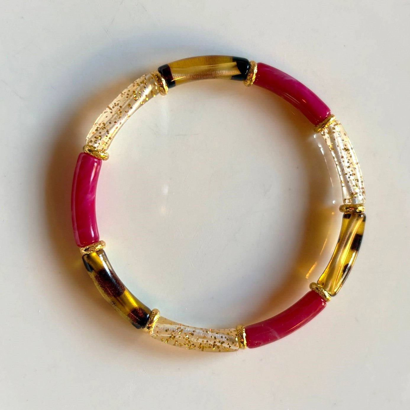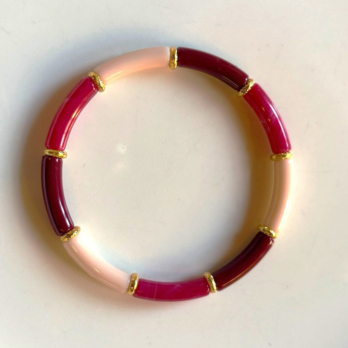 • Design : Alternance de perles de résine blanches et de perles de résine translucides ou colorées.
