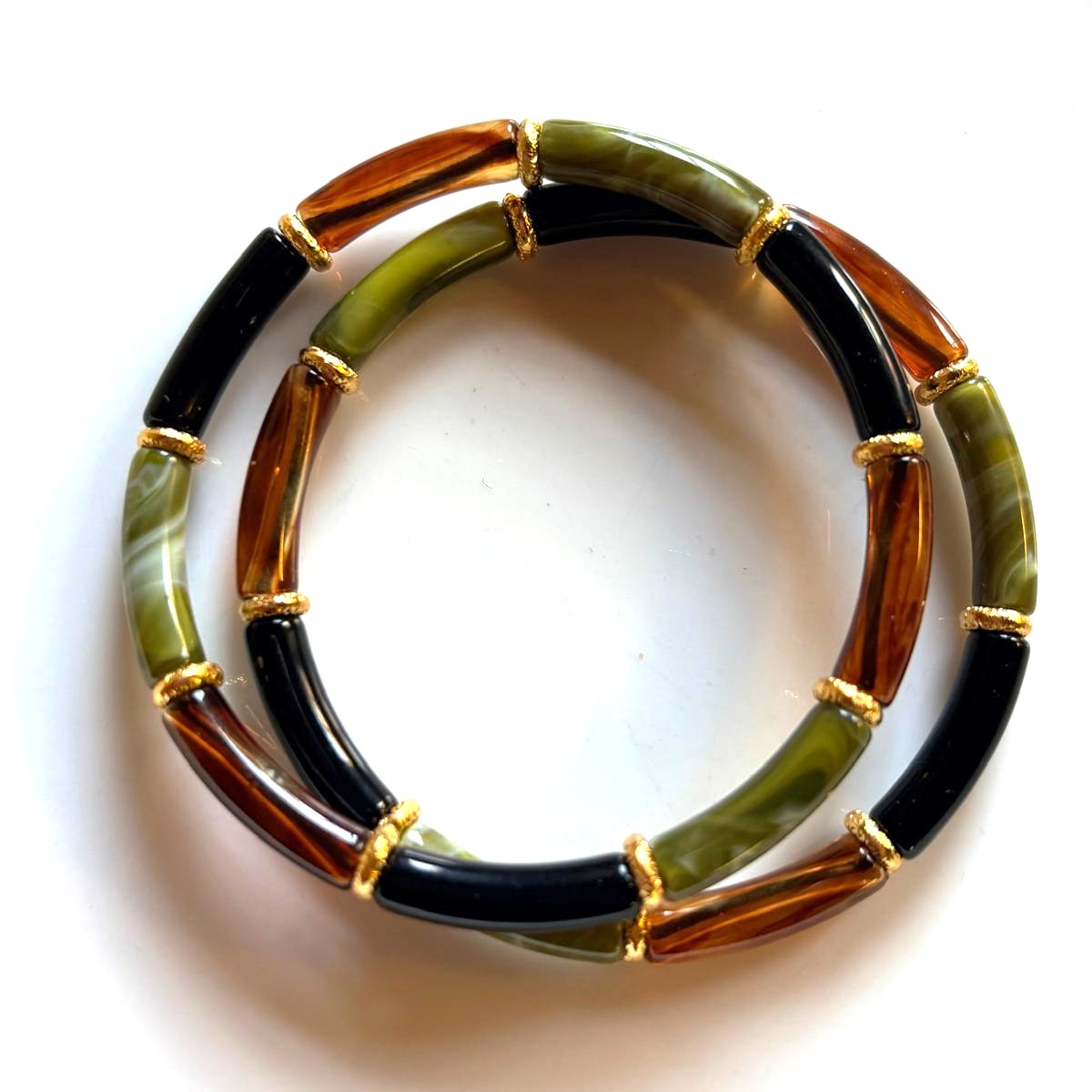 • Design : Alternance de perles de résine blanches et de perles de résine translucides ou colorées.